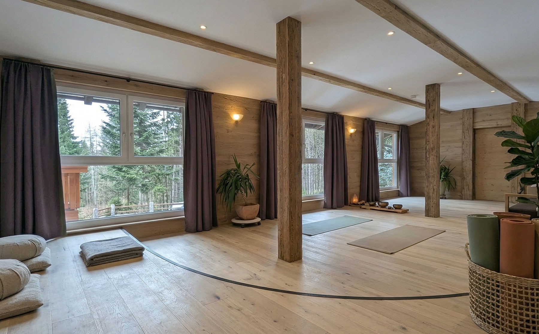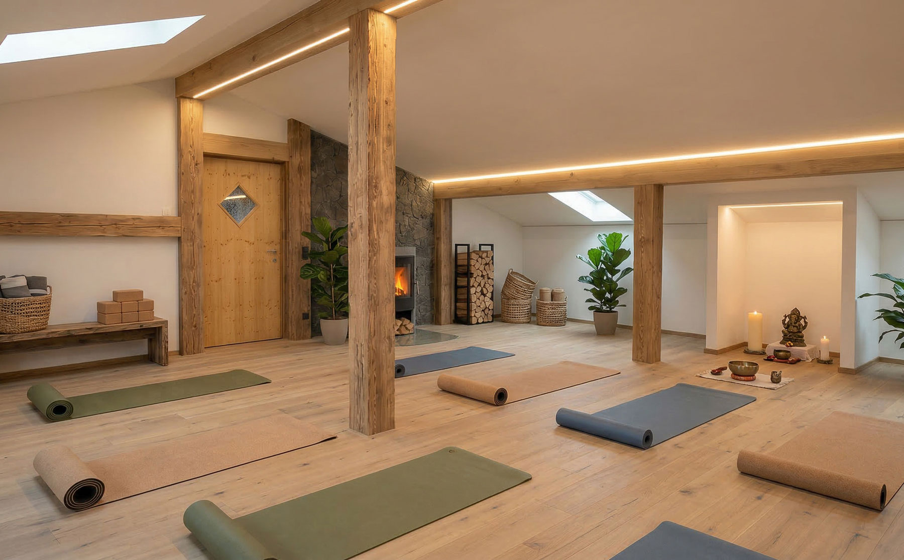Der Raum eignet sich sowohl für geschäftliche Tagungen, Workshops und Seminare als auch für persönliche Auszeiten, etwa bei Yoga- oder Entspannungsangeboten.